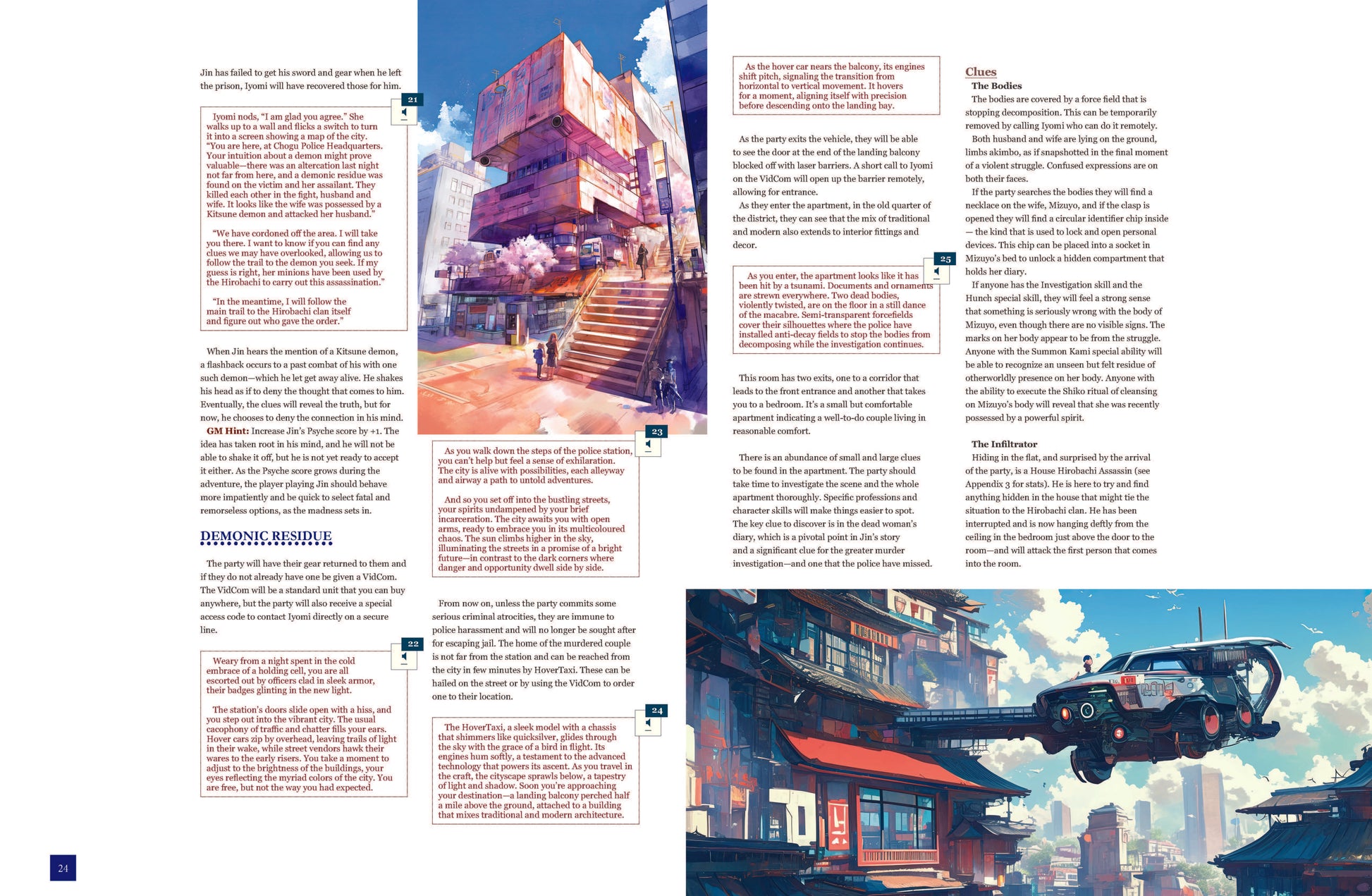 Mit Hilfe unerwarteter Verbündeter stellst du dich deinen Dämonen und den finsteren Mächten, die die Welt von Katana-Ra ins Chaos stürzen wollen. In diesem ersten Premium-Abenteuermodul für das Katana-Ra-Spiel deckst du dunkle Geheimnisse auf, die nicht nur deinen eigenen Verstand, sondern das gesamte Gefüge der Gesellschaft bedrohen, und navigierst durch die gefährlichen Gewässer politischer Intrigen und Unterweltgeschäfte, um die Wahrheit ans Licht zu bringen.